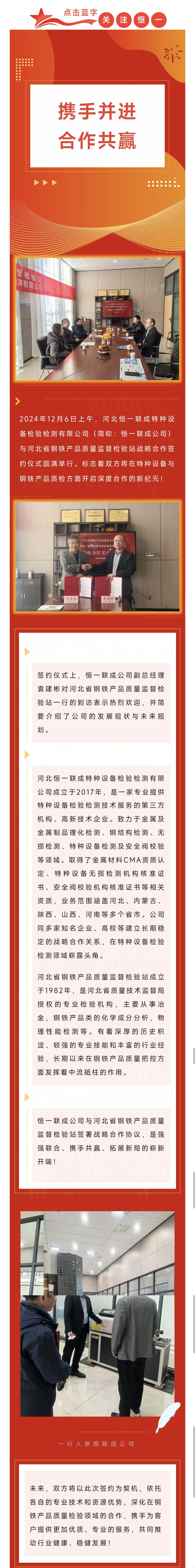攜手并進 合作共贏│恒一科技與河北省鋼鐵產品質量監(jiān)督檢驗站合作簽約儀式圓滿舉行!