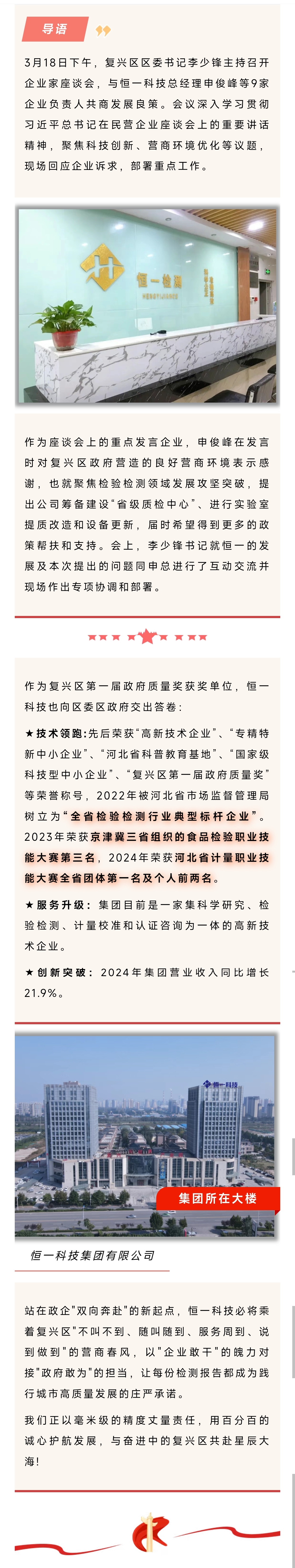 政企同心談丨恒一科技應(yīng)邀參加由李少鋒主持召開的企業(yè)家座談會(huì)